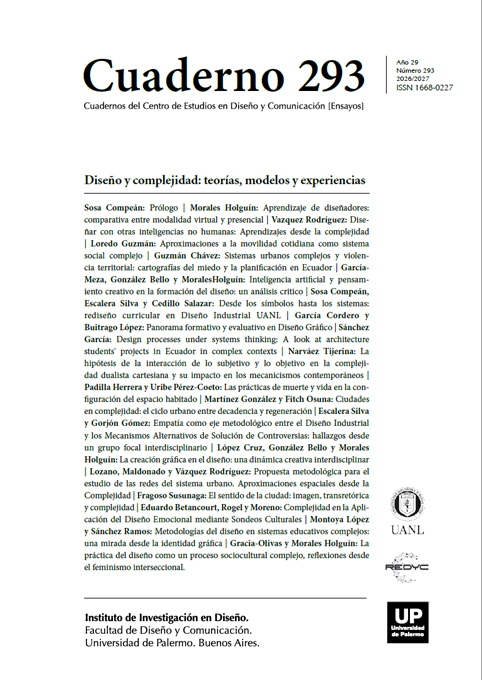 En esta edición se publican los resultados del proyecto realizado entre el Instituto de Investigación en Diseño de la Universidad de Palermo y la Universidad Autónoma de Nuevo Léón, México, en el marco de la Línea de Investigación Nro. 12 Complejidades y Periferias