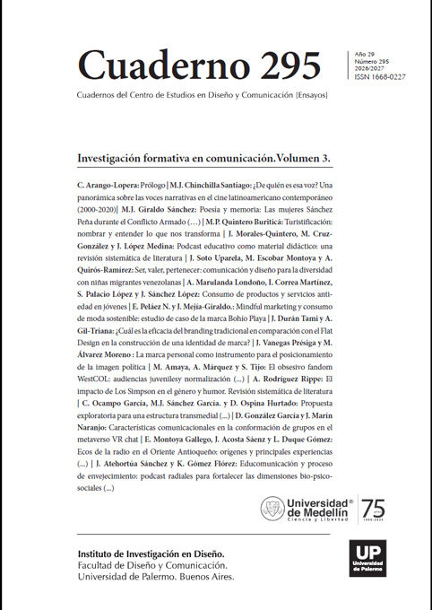 En esta edición se publican los resultados del proyecto realizado entre el Instituto de Investigación en Diseño de la Universidad de Palermo y la Universidad de Medellín, Colombia, en el marco de la Línea de Investigación Nro. 1 Cruces entre Cultura y DiseñoComplejidades y Periferias
