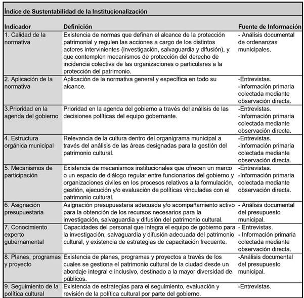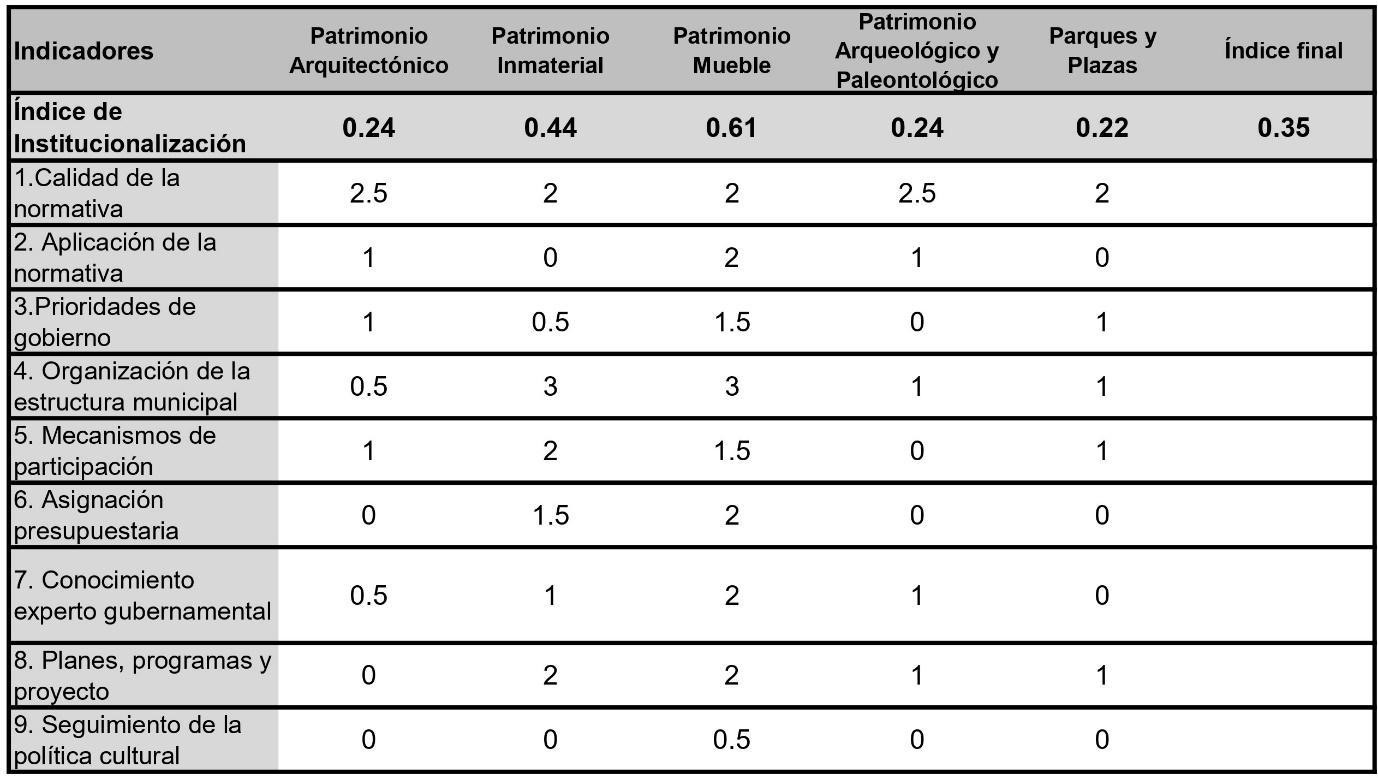 4. Índice de Sustentabilidad de la Institucionalización del Patrimonio Urbano