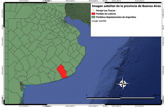 El modelo de poblamiento del espacio geográfico del sudeste de la provincia de Buenos Aires, es producto de la vinculación que han mantenido los espacios urbanos con su entorno rural desde fines del siglo XIX, con la etapa de crecimiento hacia afuera de Argentina (Gejo y Liberali, 2006) El resultado ha sido una estructura de asentamientos compuesta por un núcleo urbano principal y un espacio rural donde la población se distribuye de manera dispersa o aglomerada (Jacinto, 2012). Dentro de esta subregión, el partido de Lobería (Figura 1) fue clasificado por Quesada Aramburu y Cadelli (2012) como un municipio perteneciente a la región agrícola del trigo, seguido por el maíz y girasol, pero que además posee actividades ganaderas y turísticas de relevancia. Su ciudad cabecera, Lobería, presentaba para el último Censo Nacional de Población y Vivienda, un total de 13.003 habitantes (INDEC, 2010). En el marco de la ruralidad del partido, sobre la Ruta Provincial N° 88, entre los kilómetros 78,6 y 80, se localiza el paraje “Las Toscas”, distante casi 79 kilómetros de la ciudad de Mar del Plata y 37 kilómetros de la ciudad de Quequén. La ciudad de Lobería se encuentra a 85 kilómetros (si es que se opta por utilizar como medio para el transporte la mencionada ruta), hasta llegar a la ciudad de Quequén y luego recorrer la Ruta Provincial N° 227 hasta la cabecera de partido. Existe otra opción para ir desde el paraje a la ciudad de Lobería, o viceversa, a través de un camino de tosca que conecta la cabecera de partido con su balneario, Arenas Verdes. Ante la lejanía que presenta el paraje de la ciudad de Lobería, los pobladores optan por movilizarse a otras ciudades más cercanas como el aglomerado Necochea – Quequén, la ciudad de Miramar, o el aglomerado Batán – Mar del Plata, quedando relegada la cabecera de partido para cuestiones que hacen a la producción agropecuaria, como ocurre con el Servicio Nacional de Sanidad y Calidad Agroalimentaria (SENASA).