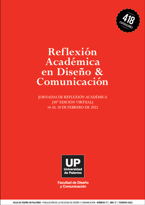 Núm. 76 (2021)El Coloquio Internacional de Investigadores en Diseño es un evento anual creado y organizado por el Instituto de Investigación en Diseño de la Universidad de Palermo. En este número se recopilan los resúmenes de todas las ponencias, con referencia a sus autores, proyectos y líneas de investigación, que se presentaron en la edición 1 del Coloquio que se realizó del 15 al 23 de febrero 2022. El Coloquio se realiza anualmente, en forma ininterrumpida desde el año 2016, en el marco de la Semana Internacional de Diseño en Palermo