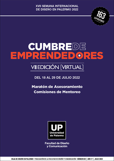 Núm. 82 (2022)La Cumbre de Emprendedores Creativos reúne un conjunto de actividades destinadas a la capacitación y la vinculación profesional de estudiantes avanzados y jóvenes profesionales y emprendedores de todos los campos del diseño, las comunicaciones y la creatividad de Argentina y América Latina. Es un evento anual creado y organizado por la Facultad de Diseño y Comunicación de la Universidad de Palermo. En este número se reúnen todas las actividades de la Cumbre correspondiente la edición XX , julio 2025. La Cumbre se realiza anualmente, en forma ininterrumpida, desde el año 2016, en el marco de la Semana Internacional de Diseño en Palermo. -