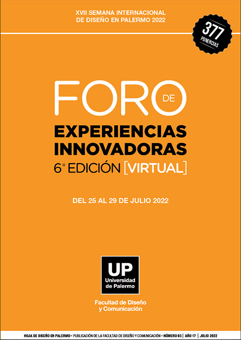 Núm. 83 (2022)El Foro de Experiencias y Cátedras Innovadoras en Diseño, Comunicación y Creatividad es un evento anual creado y organizado por la Facultad de Diseño y Comunicación de la Universidad de Palermo. En este número se recopilan los resúmenes de todas las ponencias, con referencia a sus autores, presentadas en la edición 6 del Foro que se realizó en Julio 2022. El Foro se realiza anualmente, en forma ininterrumpida, desde el año 2017, en el marco de la Semana Internacional de Diseño en Palermo