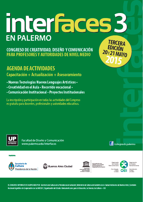 Núm. 15 (2013)Este número recopila, documenta y comunica los resúmenes, con sus autores, de todas las ponencias presentadas en el edición 10 del Congreso Interfaces: Creatividad, Tecnología e Innovación para la Calidad Educativa creado y organizado por la Facultad de Diseño y Comunicación de la Universidad de Palermo en Mayo 2013.