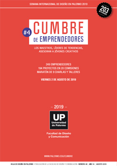 La Cumbre de Emprendedores Creativos reúne un conjunto de actividades destinadas a la capacitación y la vinculación profesional de estudiantes avanzados y jóvenes profesionales y emprendedores de todos los campos del diseño, las comunicaciones y la creatividad de Argentina y América Latina. Es un evento anual creado y organizado por la Facultad de Diseño y Comunicación de la Universidad de Palermo. En este número se reúnen todas las actividades de la Cumbre correspondiente la edición 4, julio 2019. La Cumbre se realiza anualmente, en forma ininterrumpida, desde el año 2016, en el marco de la Semana Internacional de Diseño en Palermo